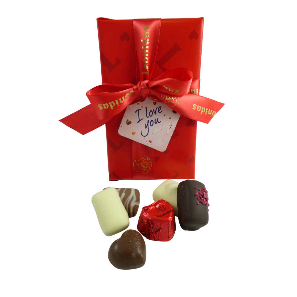 Lovingly handpicked and presented in the iconic Belgian ballotin gift box, your chocolates are finished with a luxurious Leonidas bespoke ribbon, elegant “With Love” wrapping, and a charming I Love You gift tag — ready to give, and impossible to resist.