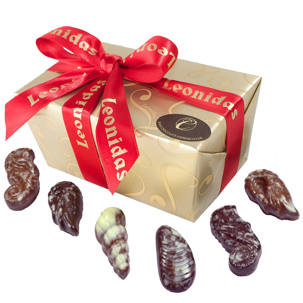 Discover the iconic Leonidas 30-Piece Belgian Chocolate Seashell Collection, featuring a luxurious assortment of milk and dark pralines crafted with 100% pure cocoa butter. Each piece is beautifully shaped into classic sea-inspired designs — seahorses, shrimps, seashells, and mussels — and filled with our signature ultra-creamy praline for a melt-in-the-mouth experience.