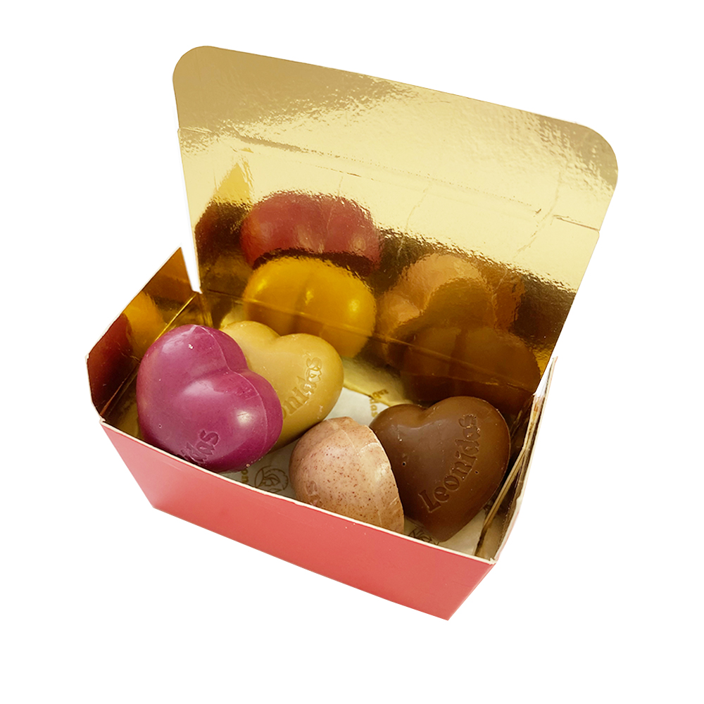 Indulge in a love token for that someone special. 4 fresh Leonidas Belgian heart-shaped chocolates, presented in a little red favour box. These outstanding flavoured fresh butter creams with creamy fruit flavours will be the love of your special one.