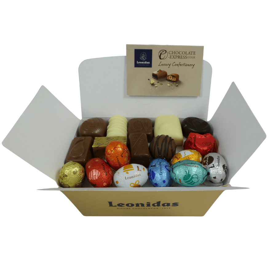 Indulge in a premium assortment of 7 Mini Eggs & 8 Assorted fresh Leonidas Belgian chocolates