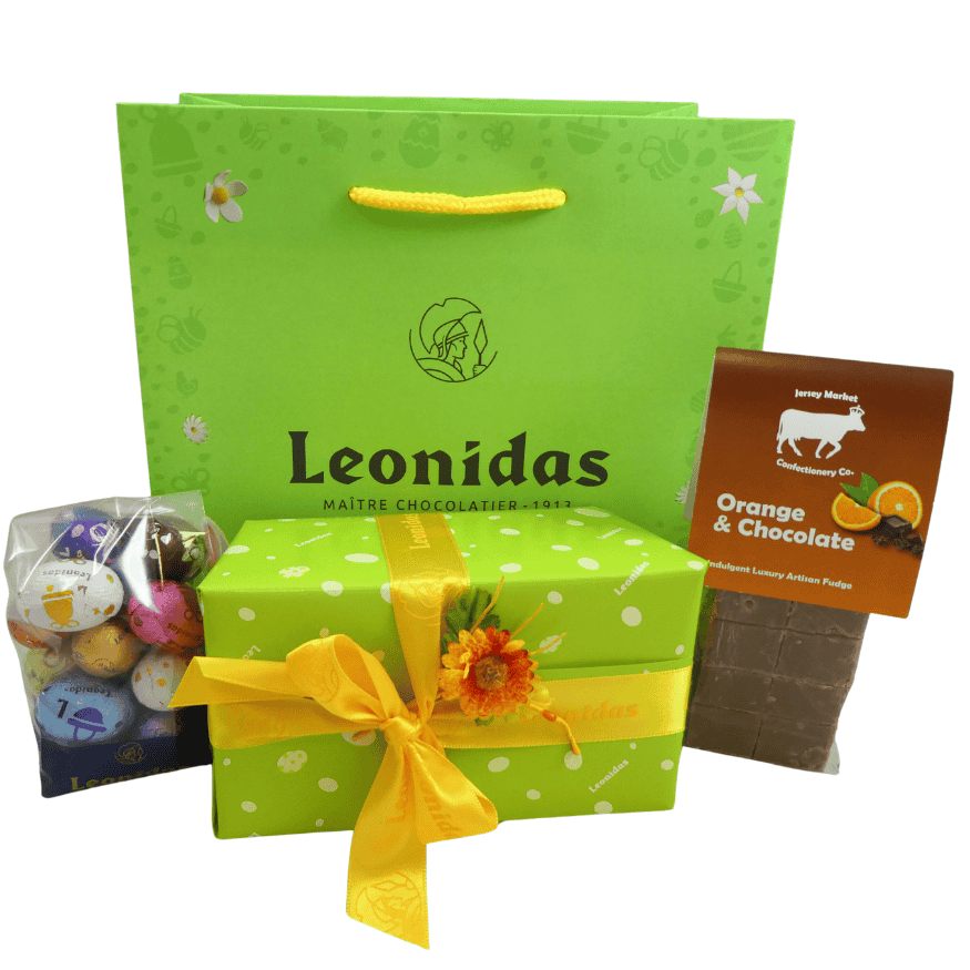 A crowd-pleasing assortment of mini eggs, chocolates, and luxury artisan fudge. All packaged for you with a Easter Leonidas gift bag to give the gift a touch of class!