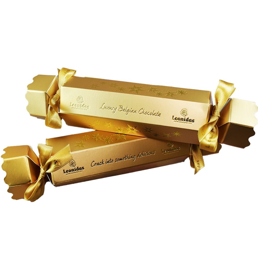 Inside, you get to choose your own two exquisite Leonidas Belgian chocolates, each one crafted with the finest ingredients and pure cocoa butter — no palm oil, just silky-smooth perfection. Whether it’s a festive praline, a creamy caramel, or a dark chocolate delight, your handpicked trio will make every pull of this cracker a moment to remember.